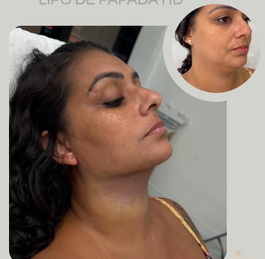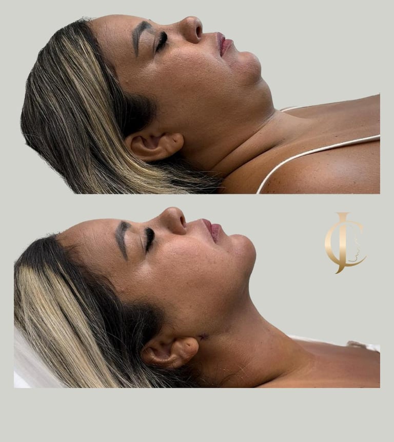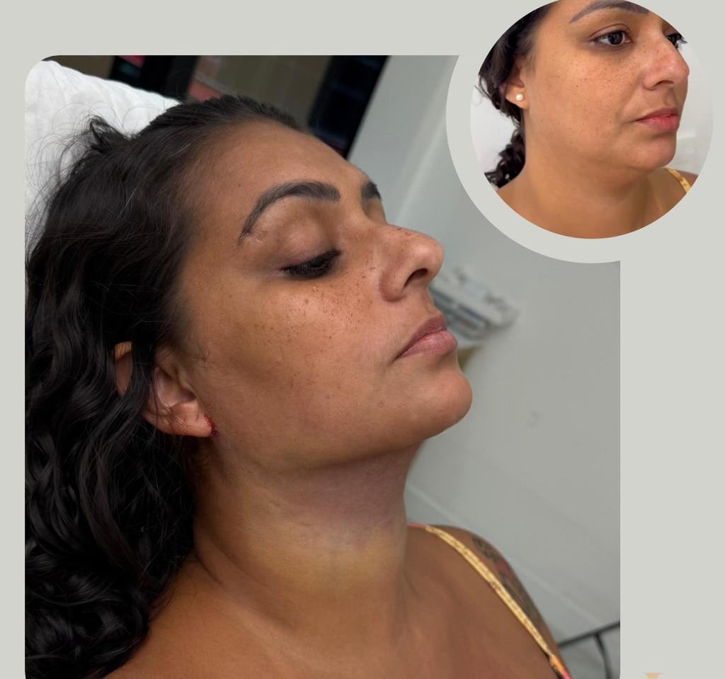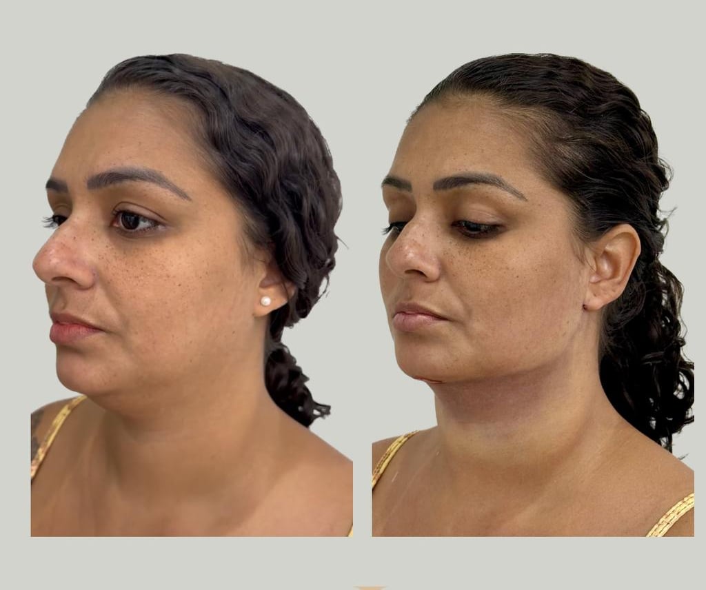 Com esse procedimento eliminamos a gordura abaixo do queixo (submentoniana) e da região lateral fazendo com que o rosto fique mais contornado e magro, realçando a linha da mandíbula e a projeção do queixo!